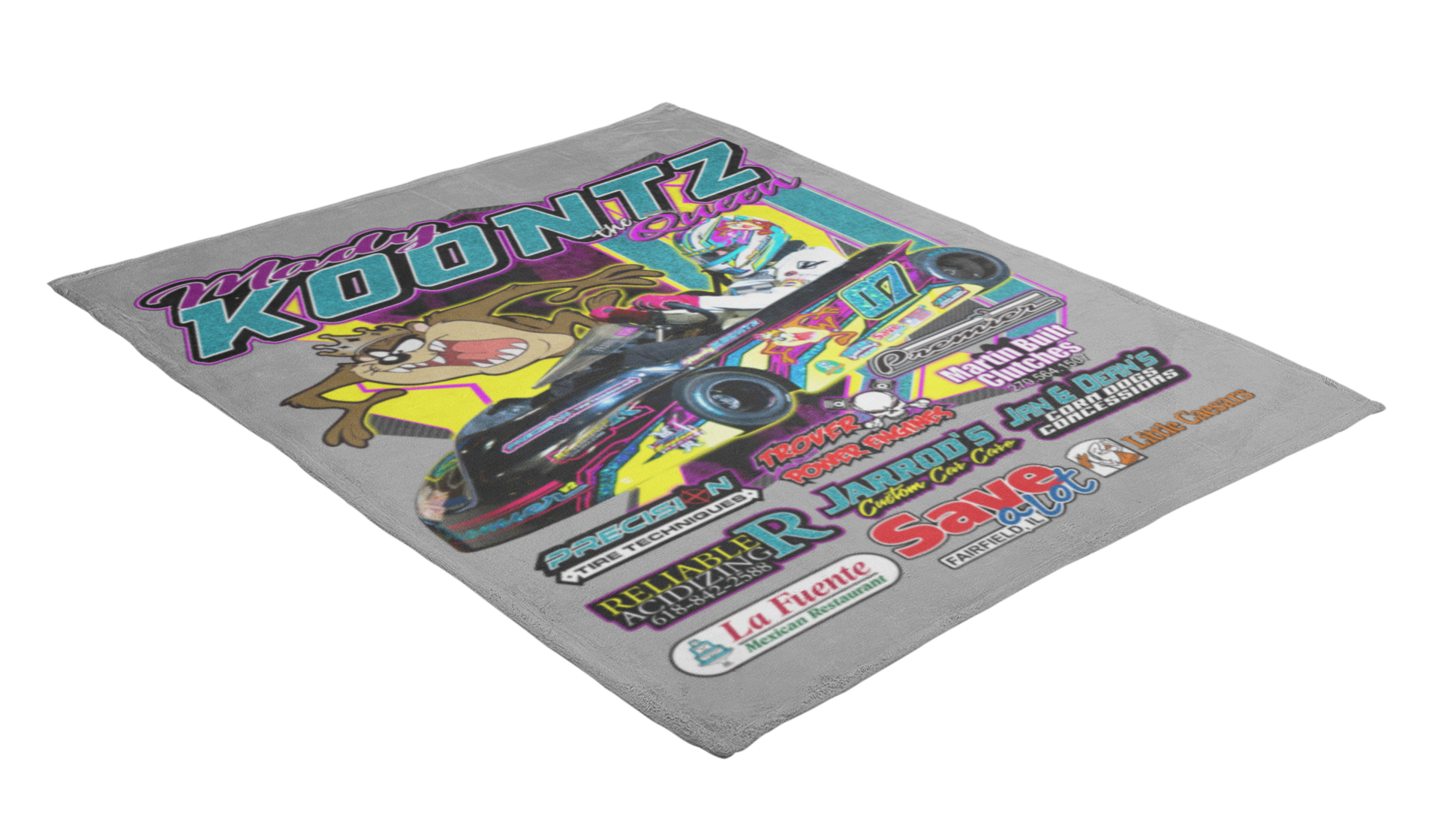 Great for cuddling up in the grandstands during a cold race night.